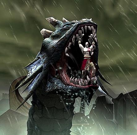 ,. Siga em frente pela porta azul, vc encontrara um save game, um mastro amarelo, salve. Siga pela direita e vc encontrara dois baús, um verde e outro azul, suba na rede e vc encontrara novamente uma Hidra, mais agora ela ta com seus bebes, vc terá que destruir os dois e só depois a mãe, ataque os bebes junto, um pouco um pouco outro, até que tenha quase matado, eles cairão ao lado de umas caixas, quando isso acontecer corro ate as caixas e suba nelas usando pulo duplo, e por fim pulo em cima da ancora que esta lá, a sua direita, faça isso com os dois, agora suba na rede que esta bem no meio e vá até a hidra mãe, para matá-la proteja-se atrás do mastro apertando L1, assim que ela matá-la ataque com seqüências e poderes, ela vai gritar as vezes, se cair volte lá e continue,(dica: quando ela gritar, pule e ataque com quadrado varias vezes) faça isso até que aparecer uma bola na cabeça dela, é o sinal, chegue perto e aperte bolinha, em seguida aperte rapidamente bolinha para machuca-lá, para matá-la de vez terá que fazer isso 4 vezes, na 4 vez, siga a seqüência que aparecer, agora vc deve entrar dentro da sua boca para pegar a chave, vá até o final e pegue com um humano. Volte e vá para a direita e suba novamente nas caixas, vc vai encontrar dois baús, 1 tem GorgonEye, o outro vida, veja acorda descendo, pule e a agarre-a, vc caíra novamente onde tinha os arqueiros, salve, e siga em frente matando todos, suba na caixa e vá pela porta a sua direita até chegar naquela porta que precisava da chave lembra, aperte R2 para abrir, corra pelo corredor até uma porta, Chute-a com R2, esta cena marca o fim da primeira fase.